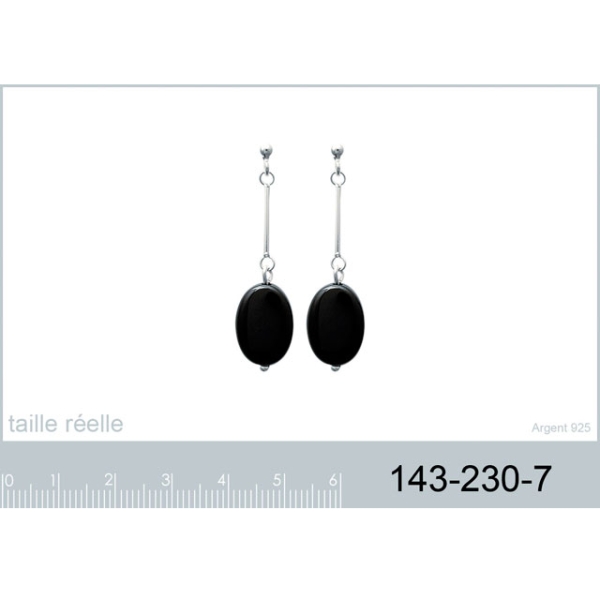 Boucles d'oreilles en argent 925/000 rhodié et pierre synthétique noire.