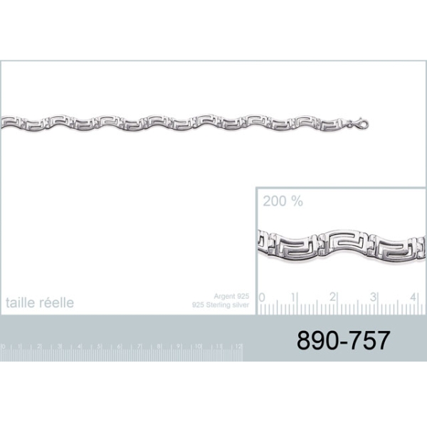 Description Bracelet en argent 925/000. Longueur 19 cm [Guide des tailles] Largeur 5 mm Matière(s) Argent 925 . Les bijoux en argent que nous vous proposons sont faits d'argent 925/000. C'est-à-dire que chaque gramme de métal est composé de 92.5% d'argent pur et de 7.5 % d'autres métaux (essentiellement du cuivre). En effet, sous sa forme pure (soit 100%), l'argent est trop mou et ne peut être suffisamment rigide pour tenir sous forme de bijou. Nous le mêlons donc à d'autres métaux. Nous apposons un poinçon 925 sur tous nos bijoux afin de vous garantir que chaque création est bien en argent 925. Poids d'argent 9,27 gramme(s) Fermoir Mousqueton Couleur(s) dominante(s) Argenté Public Adulte . Genre Femme . Saison Indémodable . Rayon en magasin T102 Cliquez sur une matière, un thème, une couleur ou une collection pour voir tous les articles associés.
