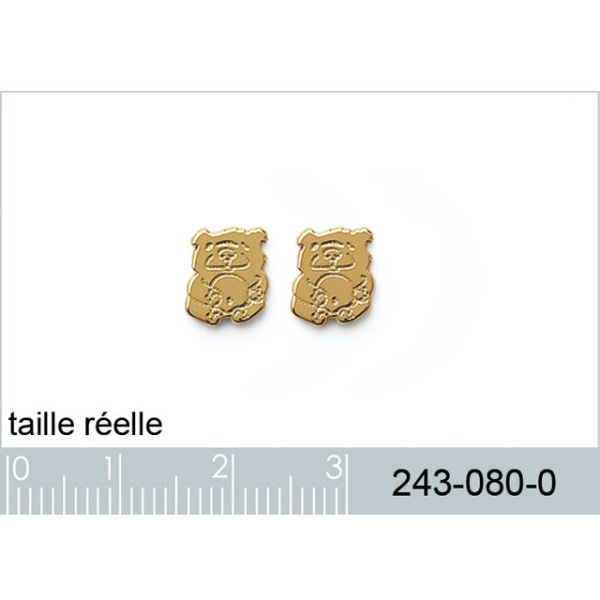 Description Boucles d'oreilles en plaqué-or. Largeur 7 mm Hauteur 8 mm Matière(s) Plaqué or . Nos bijoux en plaqué or sont faits sur une base de laiton et recouverts d'or 18 carats à 3 microns sans dispersion. Cela signifie que nous garantissons 3 microns d'or sur n'importe quelle partie du bijou. Sur la plupart de nos bijoux empierrés, nous montons à 5 microns d'or 18 carats. Pour finir, nous faisons également une finition avec de l'or 24 carats afin de donner un plus bel éclat à nos bijoux. Fermoir Tiges poussettes Couleur(s) dominante(s) Doré Public Adulte , Enfant . Genre Femme , Fille . Saison Indémodable . Thème(s) Animaux . Cliquez sur une matière, un thème, une couleur ou une collection pour voir tous les articles associés.