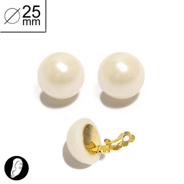 Description Boucles d'oreilles fantaisie en métal doré et plastique couleur crème. Fermoir clip. Cliquez sur une matière, un thème, une couleur ou une collection pour voir tous les articles associés.
