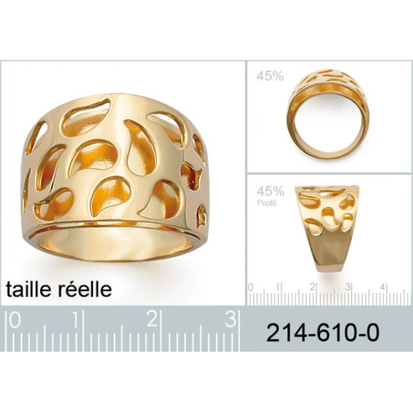 Description Bague en plaqué-or. Largeur 20 mm Matière(s) Plaqué or . Nos bijoux en plaqué or sont faits sur une base de laiton et recouverts d'or 18 carats à 3 microns sans dispersion. Cela signifie que nous garantissons 3 microns d'or sur n'importe quelle partie du bijou. Sur la plupart de nos bijoux empierrés, nous montons à 5 microns d'or 18 carats. Pour finir, nous faisons également une finition avec de l'or 24 carats afin de donner un plus bel éclat à nos bijoux. Couleur(s) dominante(s) Doré Public Adulte . Genre Femme . Saison Indémodable . Cliquez sur une matière, un thème, une couleur ou une collection pour voir tous les articles associés.