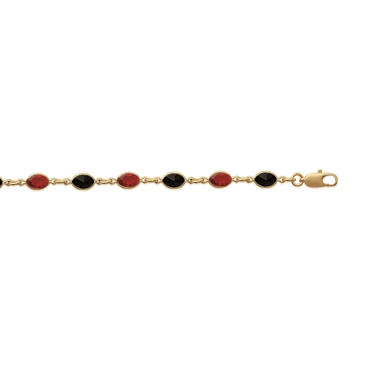Bracelet en plaqué-or et cristal serti multicolore couleur noire et rouge.