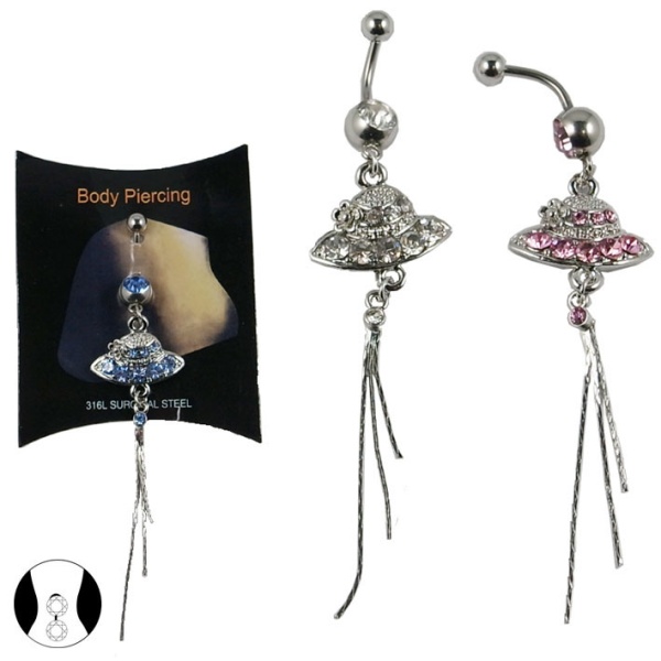 Piercing en acier chirurgical 316L et strass de couleur.