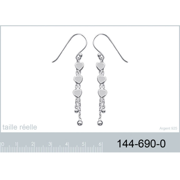 Description Boucles d'oreilles en argent 925/000. Coeurs. Largeur 5 mm Hauteur 55 mm Matière(s) Argent 925 . Les bijoux en argent que nous vous proposons sont faits d'argent 925/000. C'est-à-dire que chaque gramme de métal est composé de 92.5% d'argent pur et de 7.5 % d'autres métaux (essentiellement du cuivre). En effet, sous sa forme pure (soit 100%), l'argent est trop mou et ne peut être suffisamment rigide pour tenir sous forme de bijou. Nous le mêlons donc à d'autres métaux. Nous apposons un poinçon 925 sur tous nos bijoux afin de vous garantir que chaque création est bien en argent 925. Poids d'argent 2,47 gramme(s) Fermoir Crochets Couleur(s) dominante(s) Argenté Public Adulte . Genre Femme . Saison Indémodable . Thème(s) Amour . Cliquez sur une matière, un thème, une couleur ou une collection pour voir tous les articles associés.