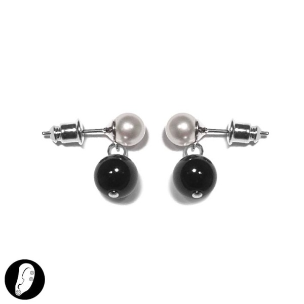 Description Boucles d'oreilles fantaisie en métal argenté et verre noir et crème. Cliquez sur une matière, un thème, une couleur ou une collection pour voir tous les articles associés.