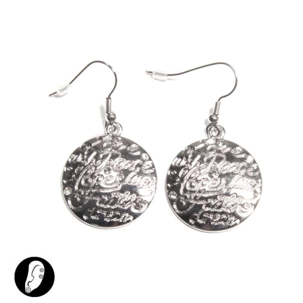 Boucles d'oreilles fantaisie en métal argenté et strass.