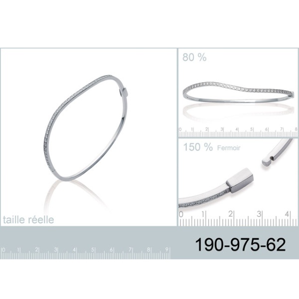 Bracelet jonc rigide en acier et oxyde de zirconium.