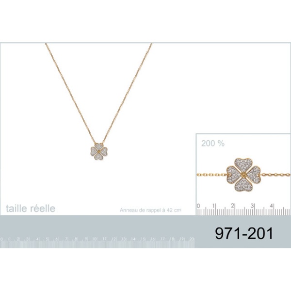 Collier en plaqué-or et oxyde de zirconium. Chance Trèfle  Adulte Femme Indémodable Nature Symboles Collier en plaqué-or et oxyde de zirconium. Chance Trèfle  Adulte Femme Indémodable Nature Symboles