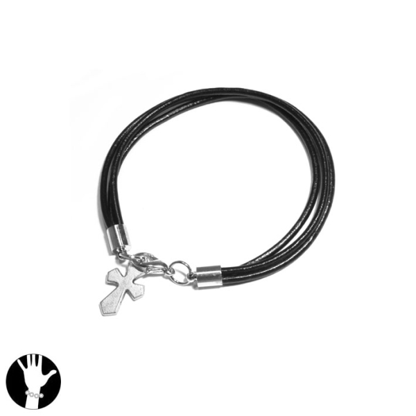 Bracelet fantaisie en cuir et métal argenté.