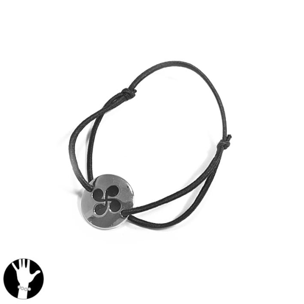 Bracelet fantaisie en métal argenté et cordon noir. Basque Cordon Croix Rond  Adulte Femme Indémodable Religion