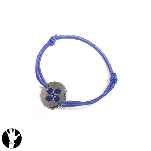 Bracelet fantaisie en métal argenté et cordon bleu. Basque Cordon Croix Rond  Adulte Femme Indémodable Religion