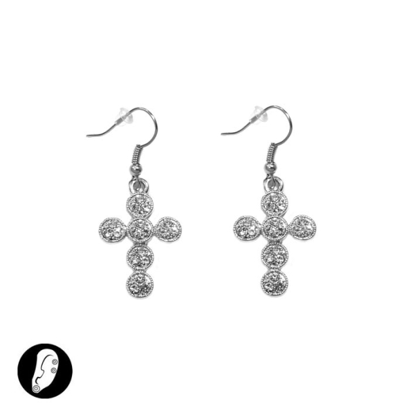 Boucles d'oreilles fantaisie en métal argenté et cristal.