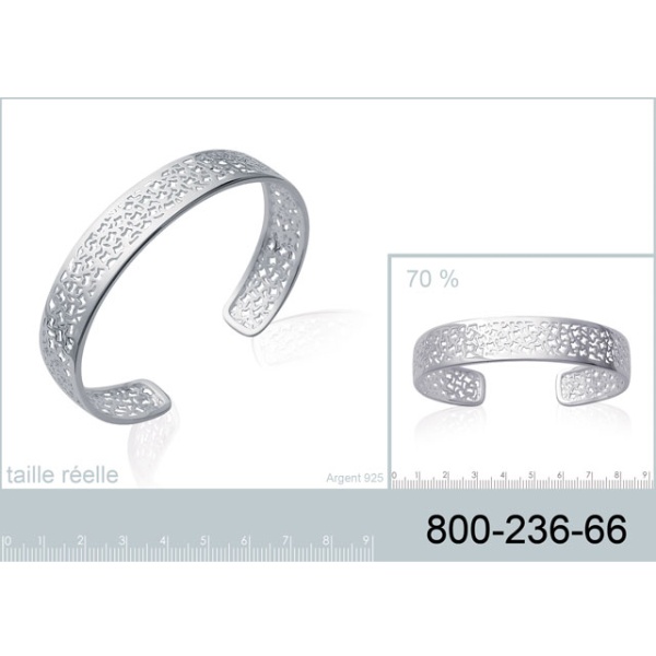 Description Bracelet jonc en argent 925/000. Largeur 13 mm Diamètre 66 mm [Guide des tailles] Matière(s) Argent 925 . Les bijoux en argent que nous vous proposons sont faits d'argent 925/000. C'est-à-dire que chaque gramme de métal est composé de 92.5% d'argent pur et de 7.5 % d'autres métaux (essentiellement du cuivre). En effet, sous sa forme pure (soit 100%), l'argent est trop mou et ne peut être suffisamment rigide pour tenir sous forme de bijou. Nous le mêlons donc à d'autres métaux. Nous apposons un poinçon 925 sur tous nos bijoux afin de vous garantir que chaque création est bien en argent 925. Poids d'argent 21,15 gramme(s) Fermoir Aucun Couleur(s) dominante(s) Argenté Public Adulte . Genre Femme . Saison Indémodable . Cliquez sur une matière, un thème, une couleur ou une collection pour voir tous les articles associés.
