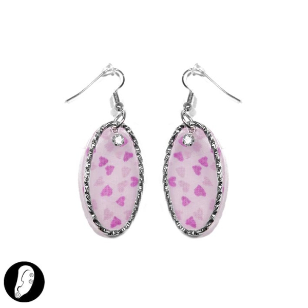 Boucles d'oreilles fantaisie en métal argenté, cristal et matières mélangées.