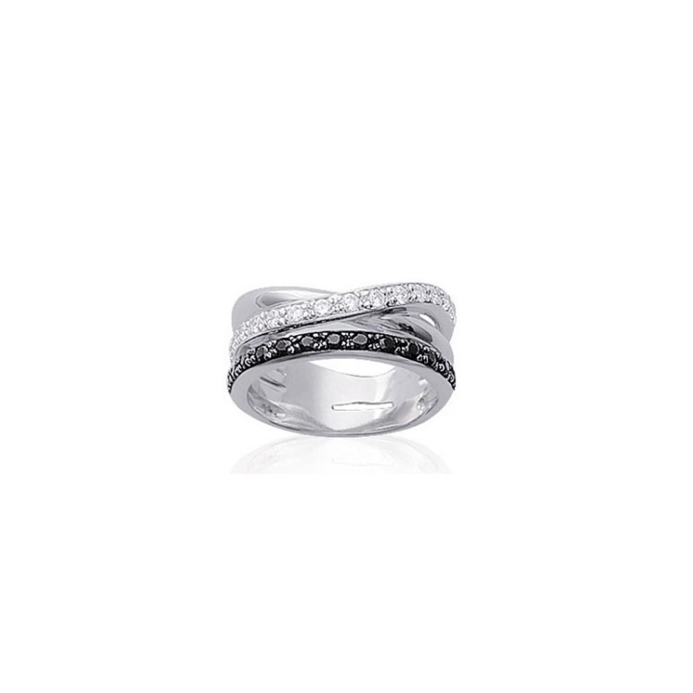 Bague en argent 925/000 rhodié, pierres synthétiques et oxyde de zirconium.