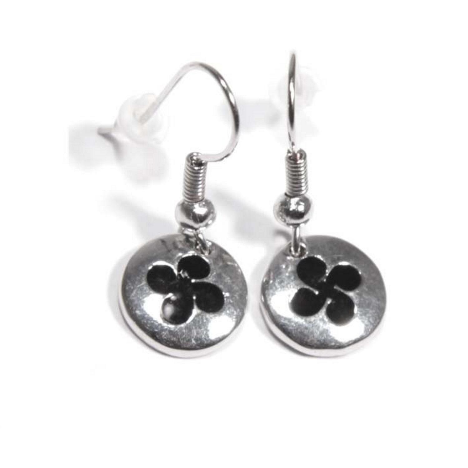 Boucles d'oreilles fantaisie en métal argenté et émail.