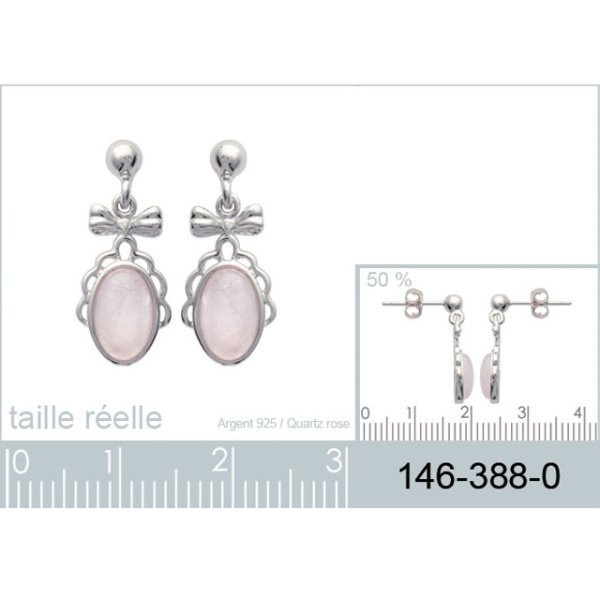 Boucles d'oreilles en argent 925/000 rhodié et quartz rose.