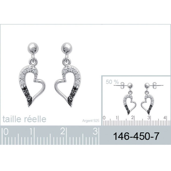 Boucles d'oreilles en argent 925/000 rhodié et pierres synthétiques.