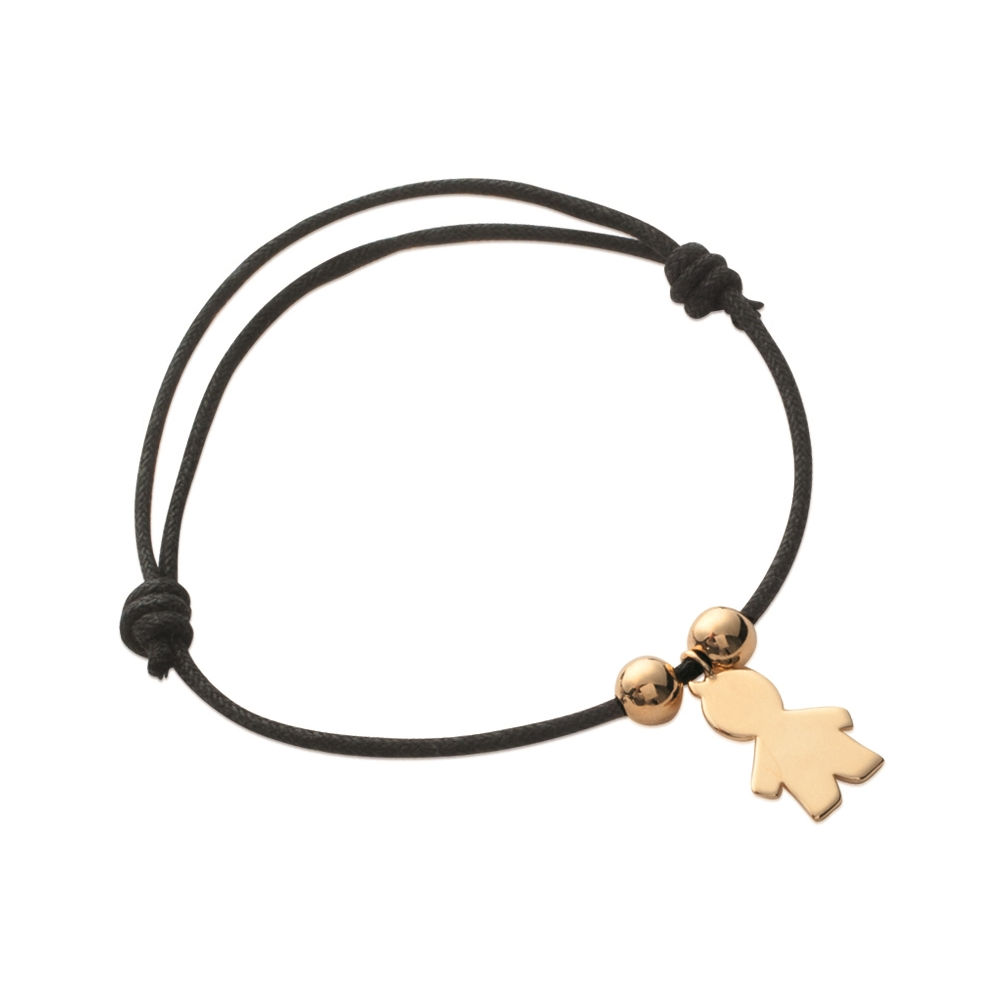 Bracelet en plaqué-or et cordon ciré noir.