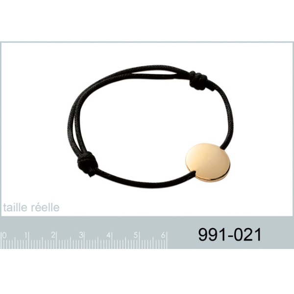 Bracelet en plaqué-or et cordon ciré noir. Cordon Rond  Adulte Enfant Femme Indémodable Gravure Fille