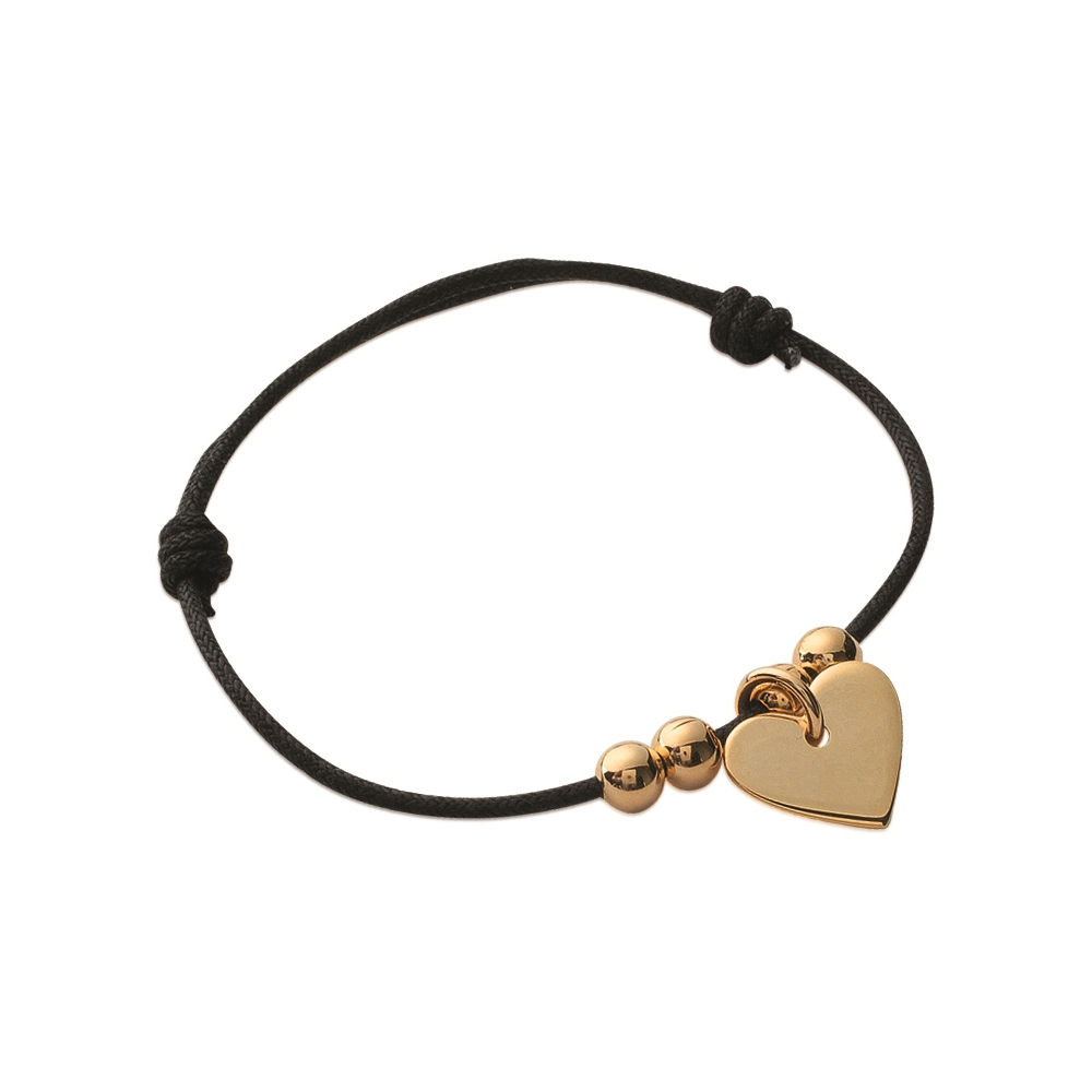 Bracelet en plaqué-or et cordon ciré noir.