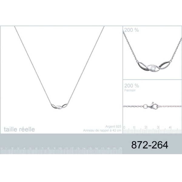 Collier en argent 925/000 rhodié, oxyde de zirconium et pierres synthétiques.
