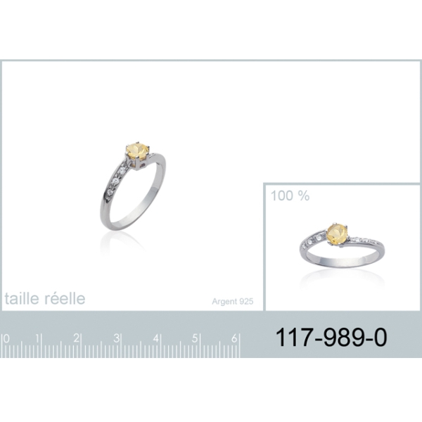 Bague en argent 925/000, oxyde de zirconium et citrine véritable.