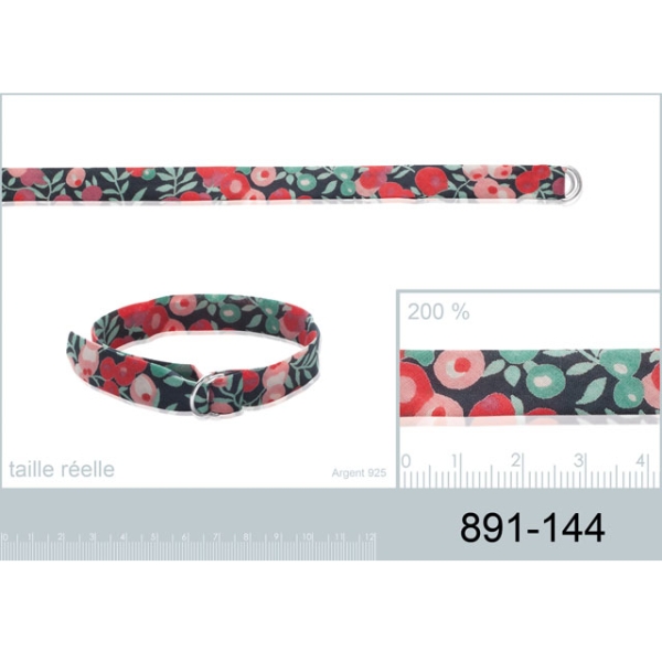 Bracelet en argent 925/000 et textile motif Liberty.