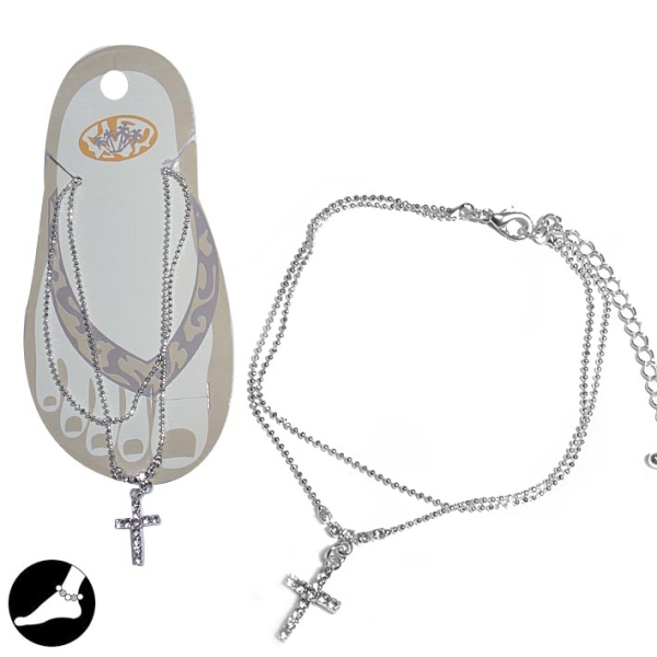 Chaîne de cheville fantaisie en métal argenté et cristal.