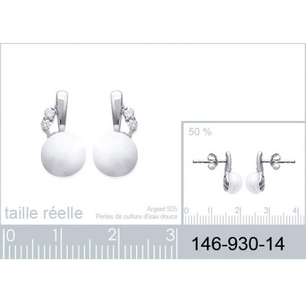 Boucles d'oreilles en argent 925/000 rhodié, oxyde de zirconium et perles d'eau douce.