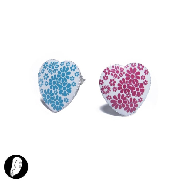 Boucles d'oreilles fantaisie en métal argenté et plastique.