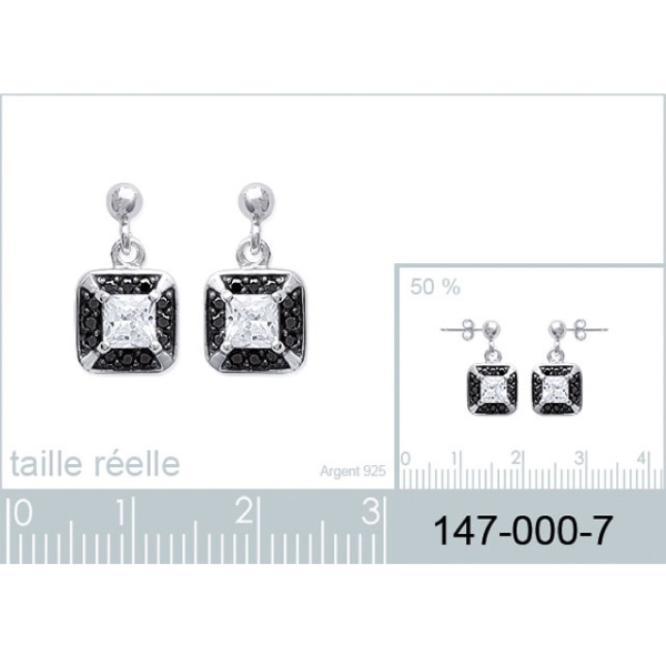 Boucles d'oreilles en argent 925/000 rhodié, oxyde de zirconium et pierres synthétiques.<br/>Fermoir tige/poussette. Carré  Adulte Femme Indémodable