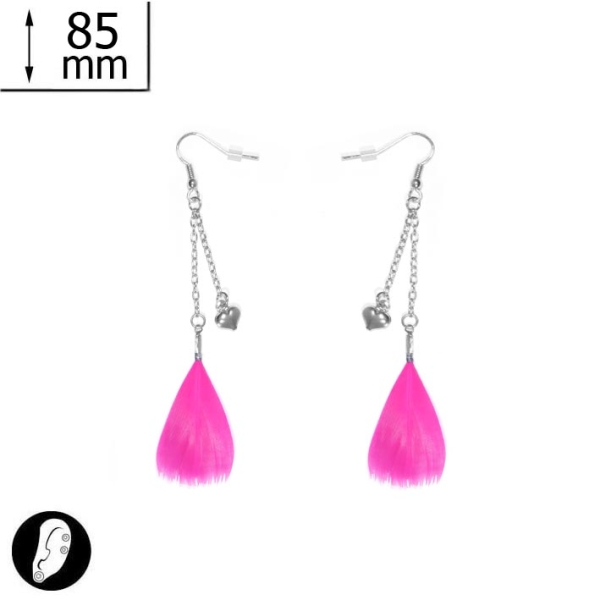 Boucles d'oreilles fantaisie en métal argenté et plumes.