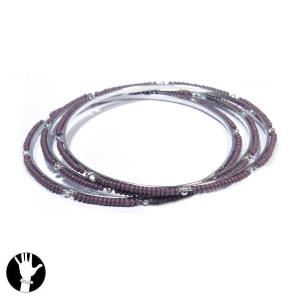 Lot de 3 bracelets fantaisie rigides en métal argenté et verre.