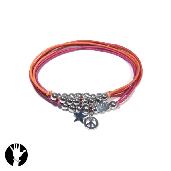 Lot de 3 bracelets fantaisie en métal argenté et textile.