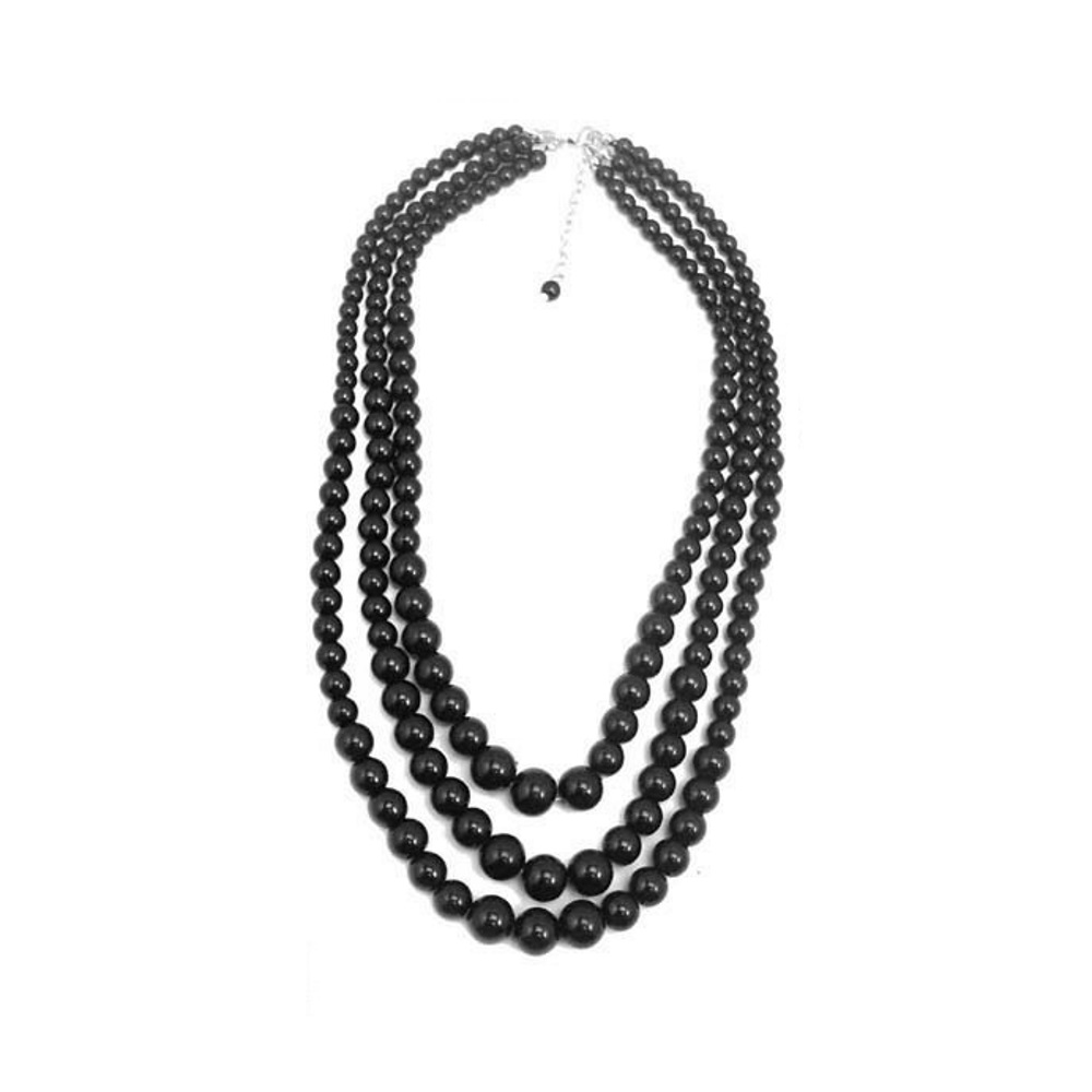 Description Collier fantaisie en métal argenté et verre. 3 rangs. Cliquez sur une matière, un thème, une couleur ou une collection pour voir tous les articles associés.