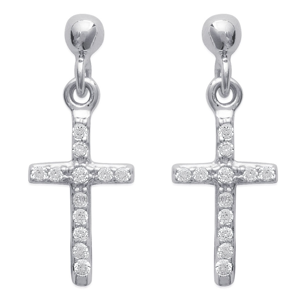 Description Boucles d'oreilles en argent 925/000 rhodié et oxyde de zirconium. Fermoir tige/poussette. Croix. Largeur 7 mm Hauteur 17 mm Matière(s) Argent 925 rhodié , Zirconium . Afin de protéger votre bijou de l'oxydation naturelle de l'argent, il est recouvert d'une couche de rhodium (un métal rare et précieux) qui garantira sa brillance dans le temps et préviendra les risques d'allergie. Notez cependant, que le bijou est alors d'une teinte plus grisée et moins brillante que l'argent non rhodié. Poids d'argent 1,28 gramme(s) Fermoir Tiges poussettes Couleur(s) dominante(s) Transparent Public Adulte . Genre Femme . Saison Indémodable . Thème(s) Religion . Cliquez sur une matière, un thème, une couleur ou une collection pour voir tous les articles associés.