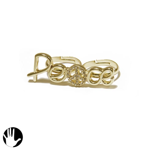 Bague fantaisie double en métal doré et cristal.