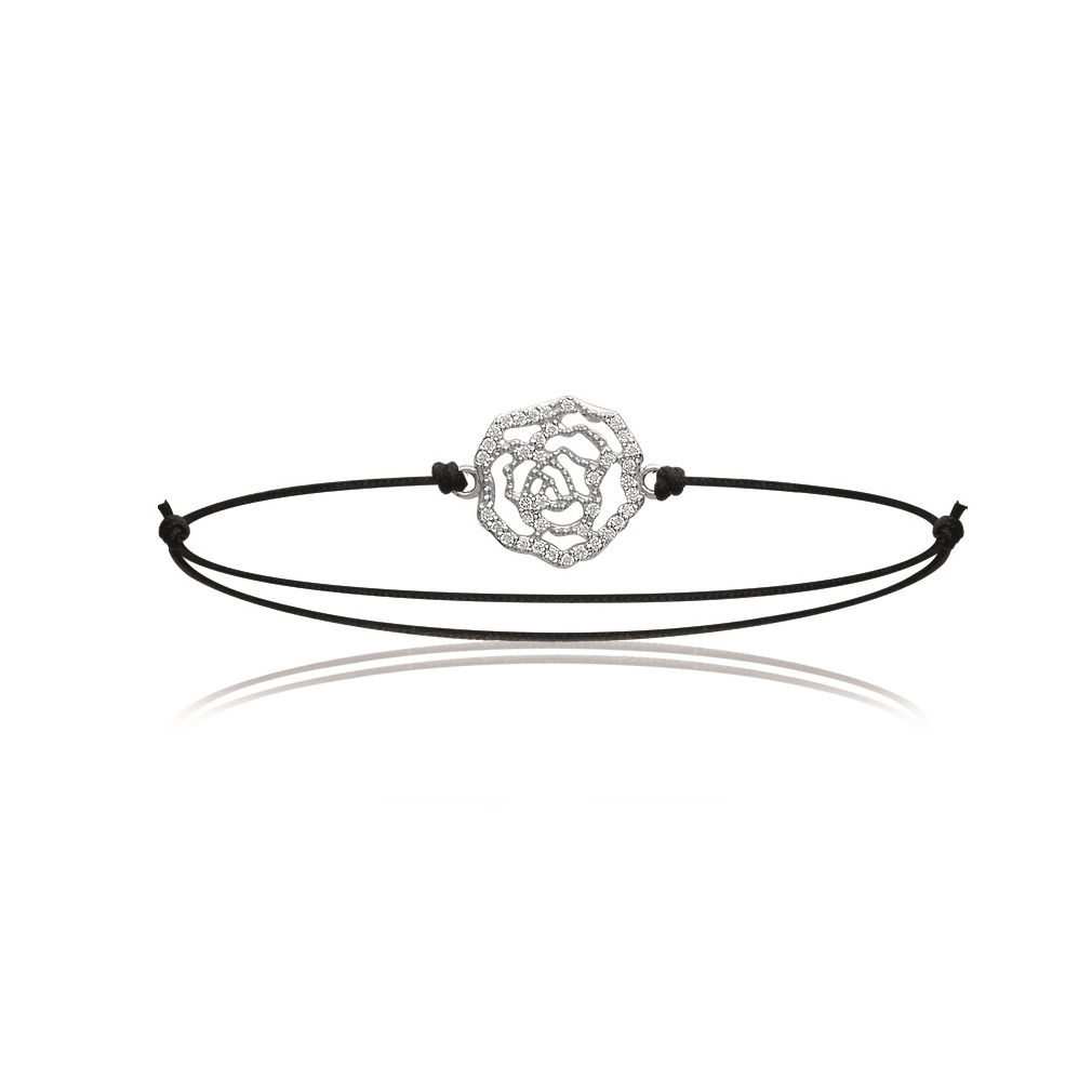 Bracelet en argent 925/000 rhodié, oxyde de zirconium et coton.