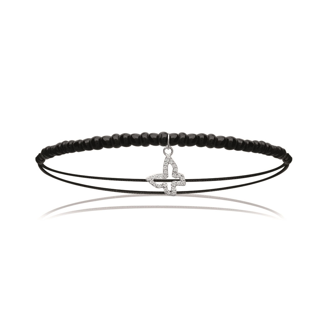 Bracelet en argent 925/000 rhodié, oxyde de zirconium et coton.