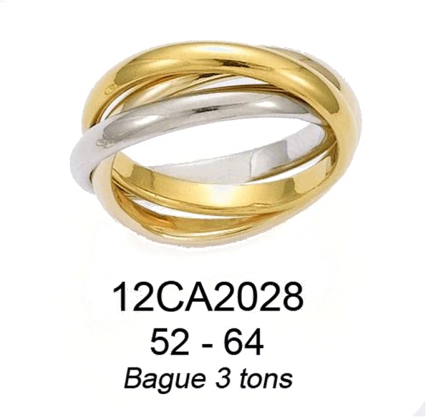 Bague 3 anneaux en plaqué-or 3 tons.