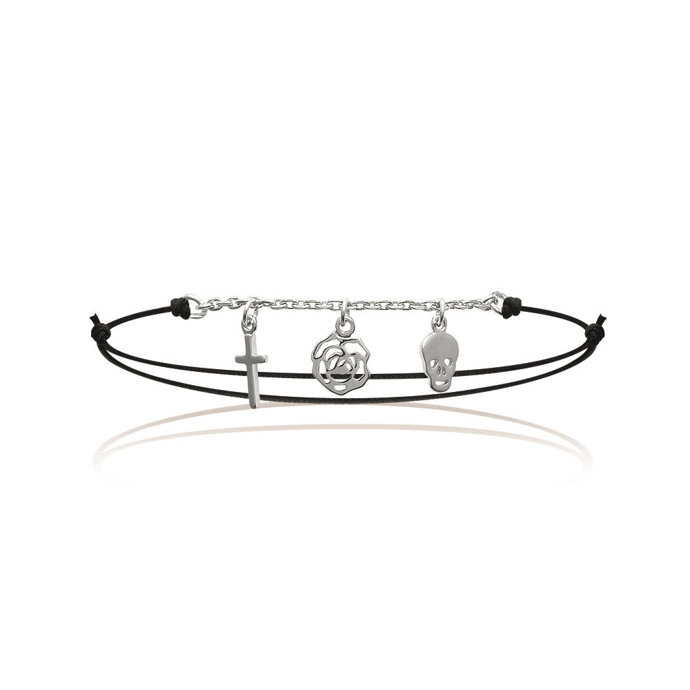 Bracelet en argent 925/000 et coton.