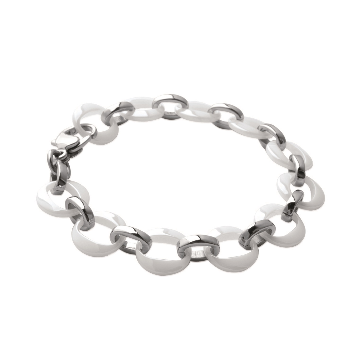Description Bracelet en acier et céramique. Longueur 19 cm [Guide des tailles] Largeur 12 mm Matière(s) Acier , Céramique . L'acier utilisé dans la bijouterie existe sous plusieurs qualités. Nous utilisons principalement la qualité 316L, qualité qui est utilisée en chirurgie. Cet acier est donc inoxydable et reste très résistant. Fermoir Mousqueton Couleur(s) dominante(s) Blanc Public Adulte . Genre Femme . Saison Indémodable . Cliquez sur une matière, un thème, une couleur ou une collection pour voir tous les articles associés.