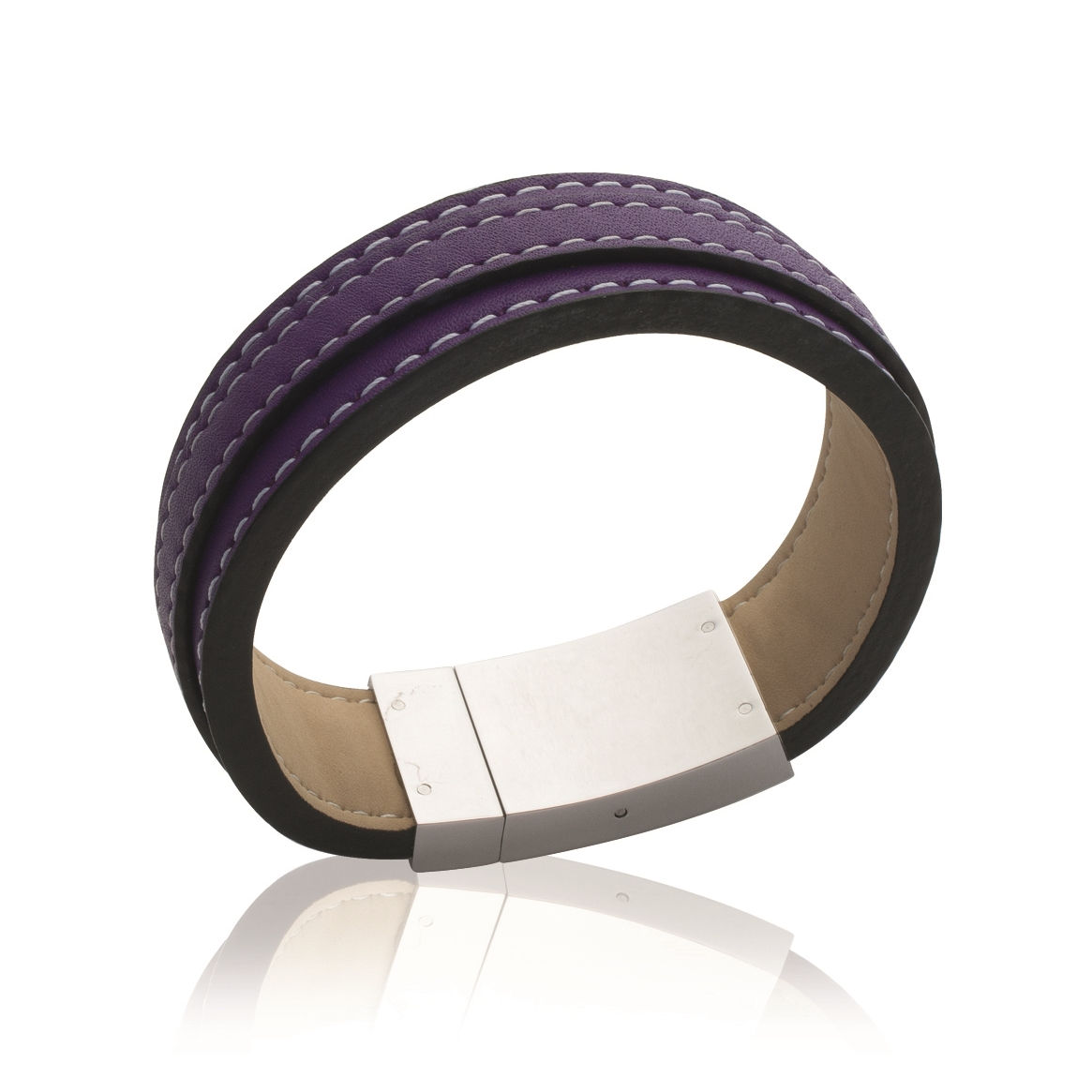 Description Bracelet en cuir et acier. Longueur 18 cm [Guide des tailles] Largeur 18 mm Matière(s) Acier , Cuir . L'acier utilisé dans la bijouterie existe sous plusieurs qualités. Nous utilisons principalement la qualité 316L, qualité qui est utilisée en chirurgie. Cet acier est donc inoxydable et reste très résistant. Fermoir Autre Couleur(s) dominante(s) Violet Public Adulte . Genre Femme . Saison Indémodable . Cliquez sur une matière, un thème, une couleur ou une collection pour voir tous les articles associés.