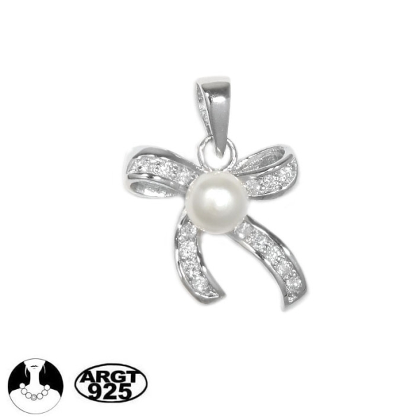 Pendentif en argent 925/000 rhodié, oxyde de zirconium et perle d'eau douce.