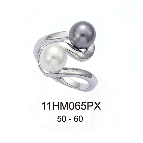 Bague en argent 925/000 rhodié et perles synthétiques.