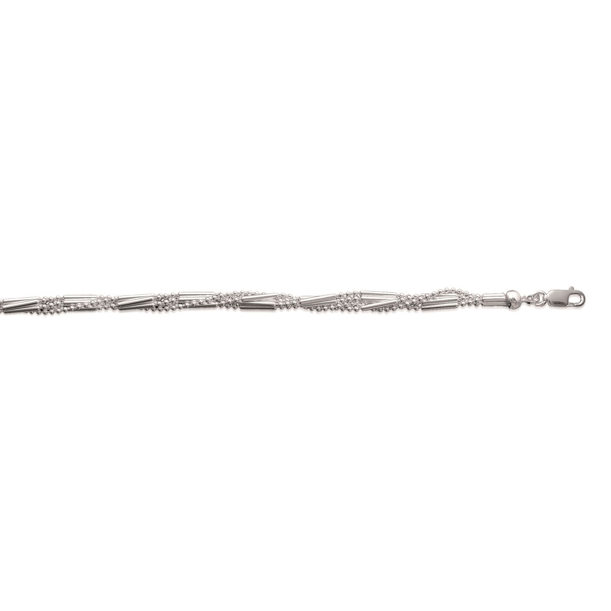 Description Bracelet en argent 925/000 rhodié. 5 rangs. Longueur 18 cm [Guide des tailles] Largeur 7 mm Matière(s) Argent 925 rhodié . Afin de protéger votre bijou de l'oxydation naturelle de l'argent, il est recouvert d'une couche de rhodium (un métal rare et précieux) qui garantira sa brillance dans le temps et préviendra les risques d'allergie. Notez cependant, que le bijou est alors d'une teinte plus grisée et moins brillante que l'argent non rhodié. Poids d'argent 7,37 gramme(s) Fermoir Mousqueton Couleur(s) dominante(s) Argenté Public Adulte . Genre Femme . Saison Indémodable . Rayon en magasin T100 Cliquez sur une matière, un thème, une couleur ou une collection pour voir tous les articles associés.