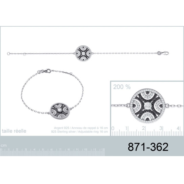 Bracelet en argent 925/000 rhodié, oxyde de zirconium et pierres synthétiques.