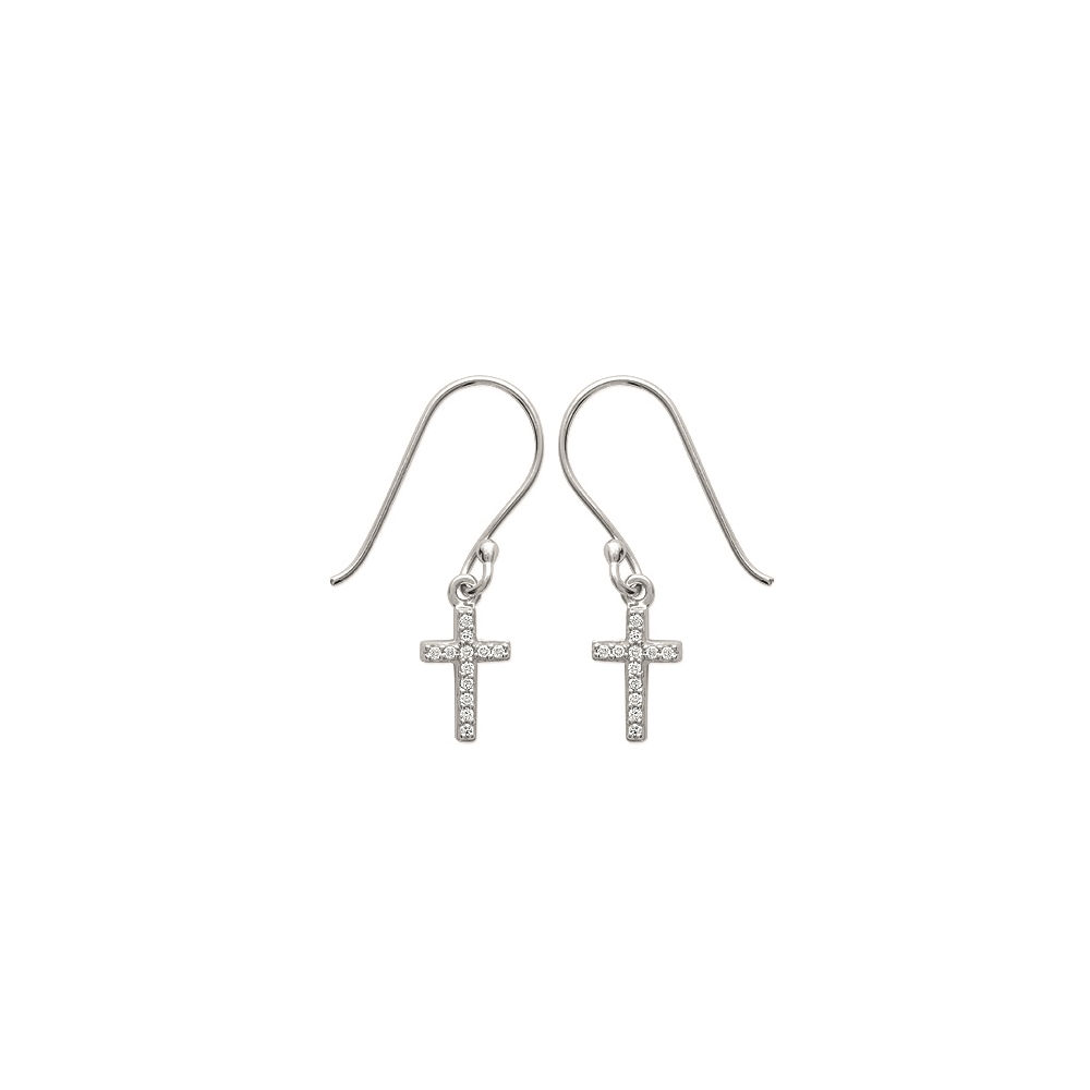 Boucles d'oreilles croix en argent 925/000 rhodié et oxyde de zirconium. Croix Pendantes  Adulte Femme Indémodable Religion
