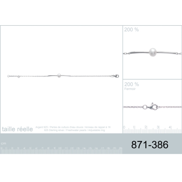 Bracelet en argent 925/000 rhodié et perle d'eau douce.